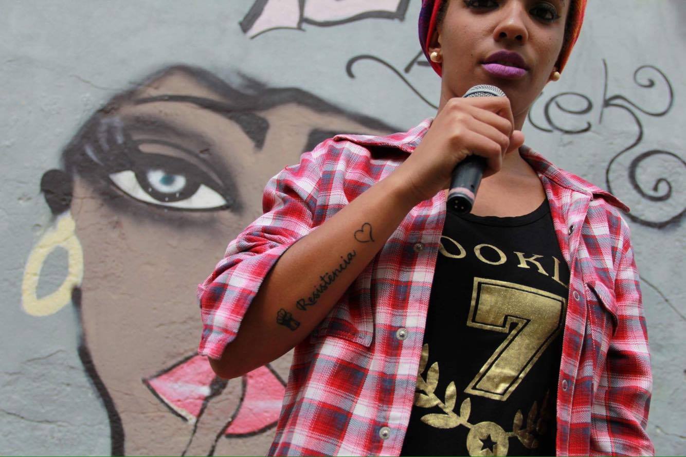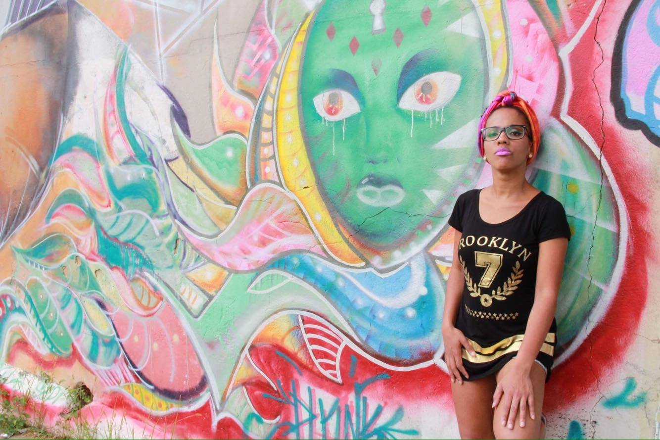 O ensaio, “encanto da mulher que, em canto, resiste”, foi produzido para a segunda edição da revista, que tem como tema o “feminismo negro”. Neste ensaio, fotografei a rapper Mari P, que compõe e interpreta letras de empoderamento negro. O cenário estrategicamente escolhido foi um muro grafitado, que compõe a ideia de produção marginal.